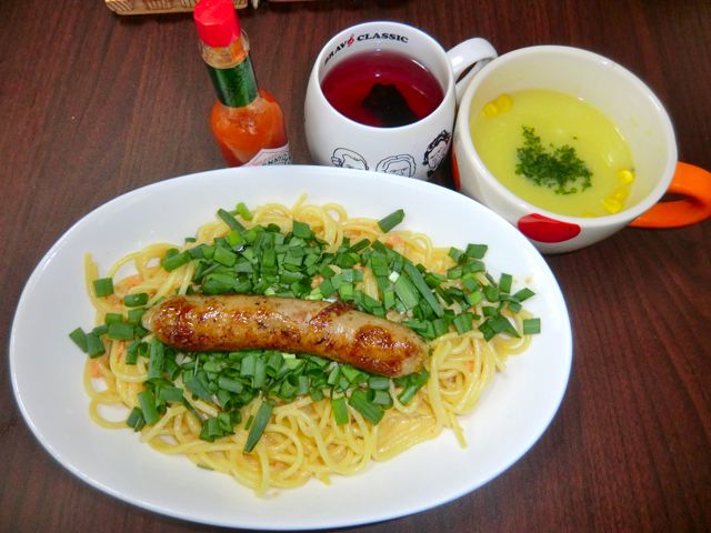 きのことコンビーフのクリームスパゲティーに、白菜を加えたクラムチャウダー。