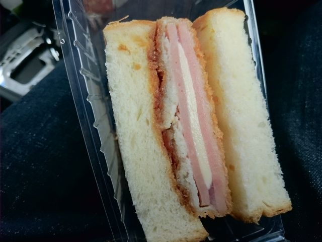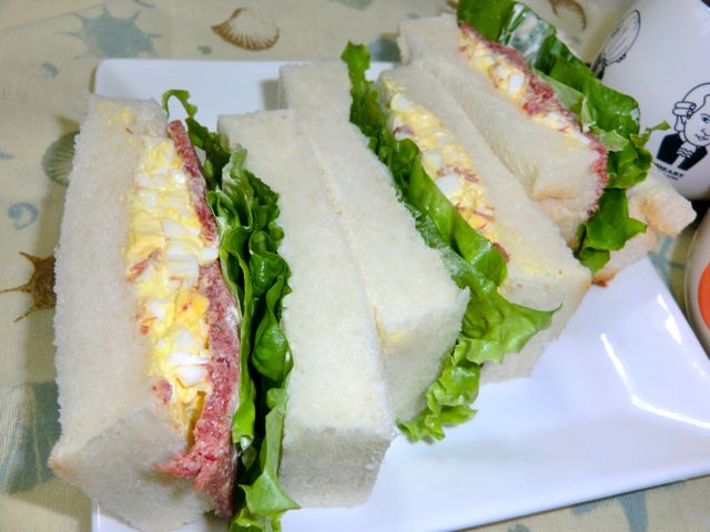 キャベツの千切りをマヨネーズであえてサンドしただけの簡単サンドイッチ。