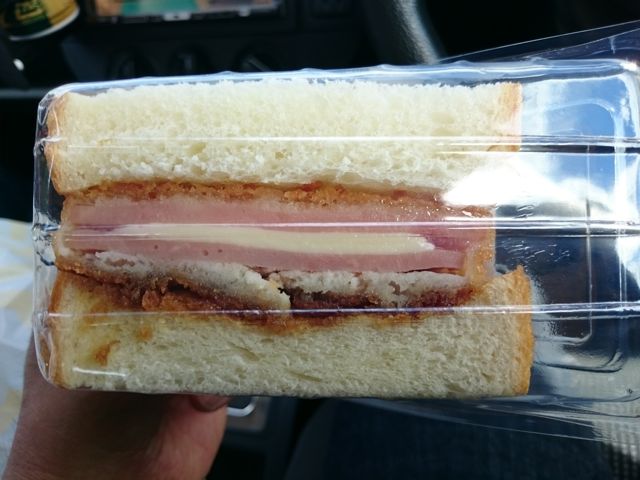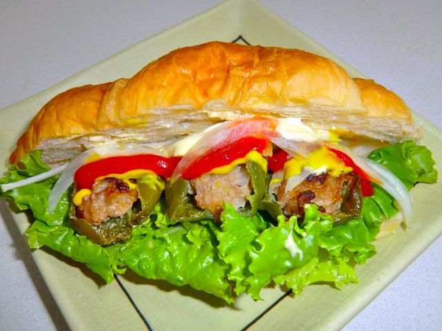 マルシンのチーズ入りハンバーグを使った、玉子入りハンバーグサンド。