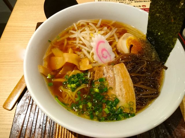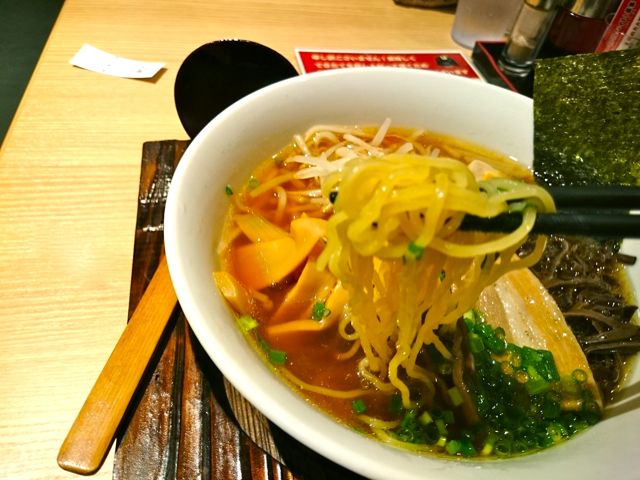 中華そばは、通常の鳥ガラベースに野菜と魚介の旨味が入ってるスープ。