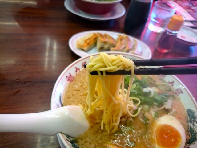 色の薄い味噌と魚介と豚骨などの風味が独特のスープの味わい。