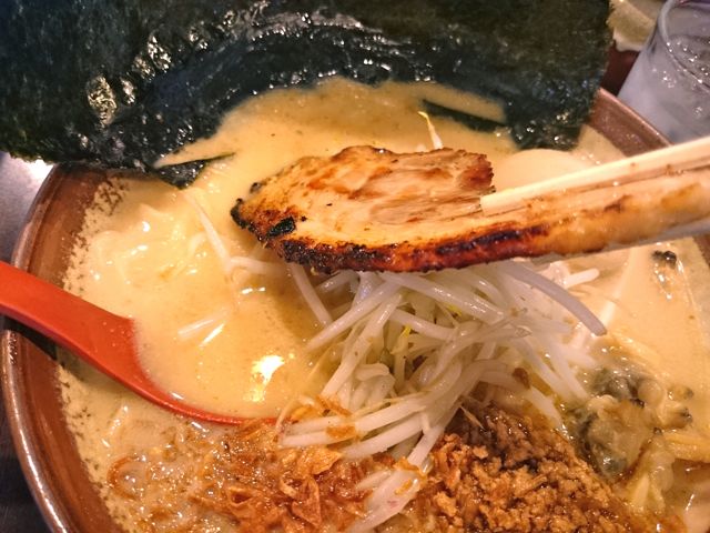 塩ラーメンだが、スープに濁りがあって、これはおそらくは豚骨からくるものなだと思う。