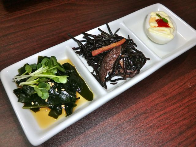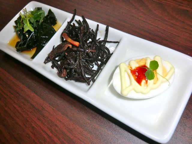 出汁巻き玉子、ツナペッパー、わかめのマヨネーズ和え。