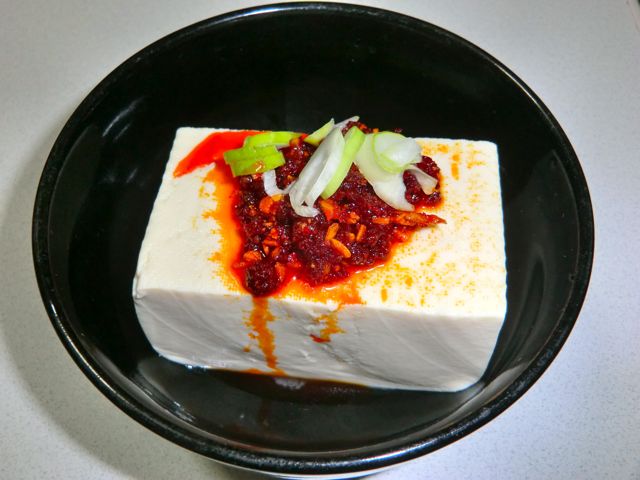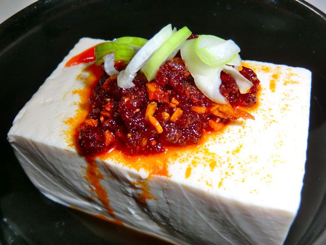食べるラー油をベースに、辛いタレをかけて出来上がり。
