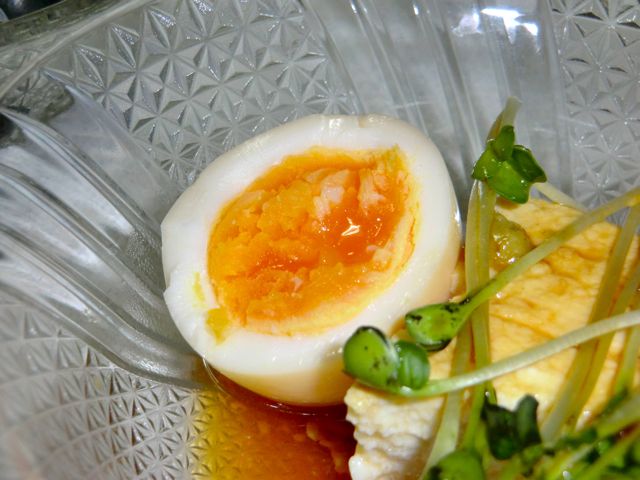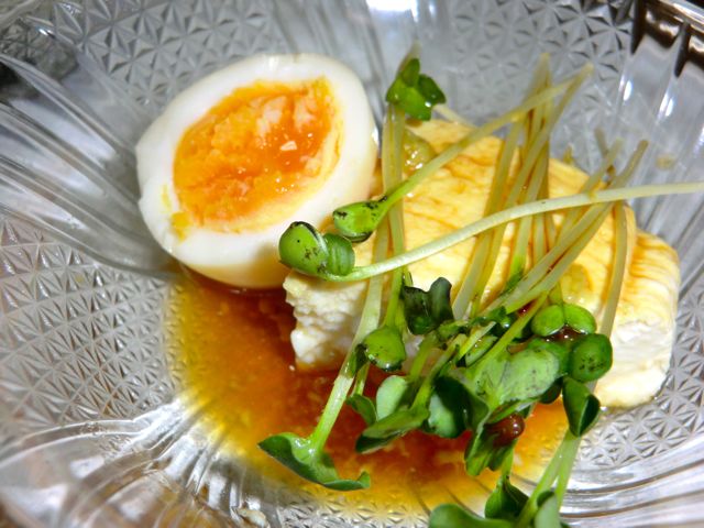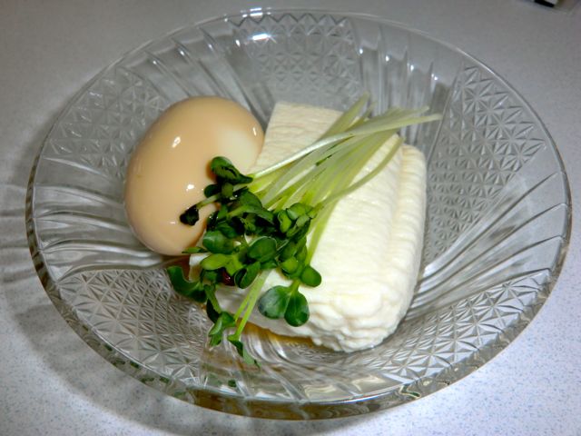 今回は食べるラー油と胡麻ペースト、ポン酢醤油をあわせたタレをかけてます。