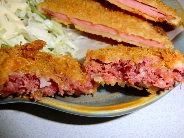 スーパーで売ってる4枚パックのハムをそのままカツにしたミルフィーユハムカツ。